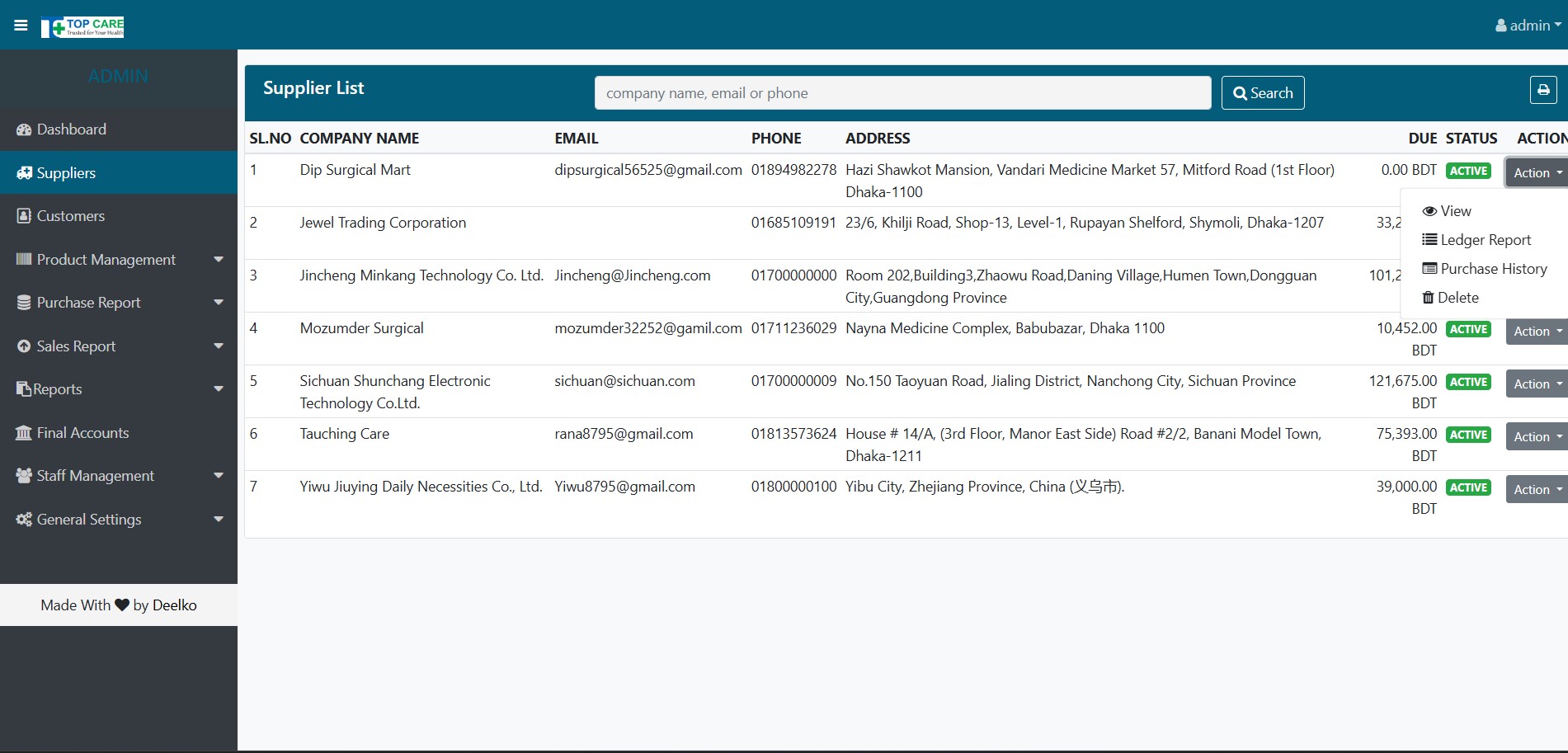 - ๐ข Supplier Management: Manage supplier profiles, purchases, and payment tracking.